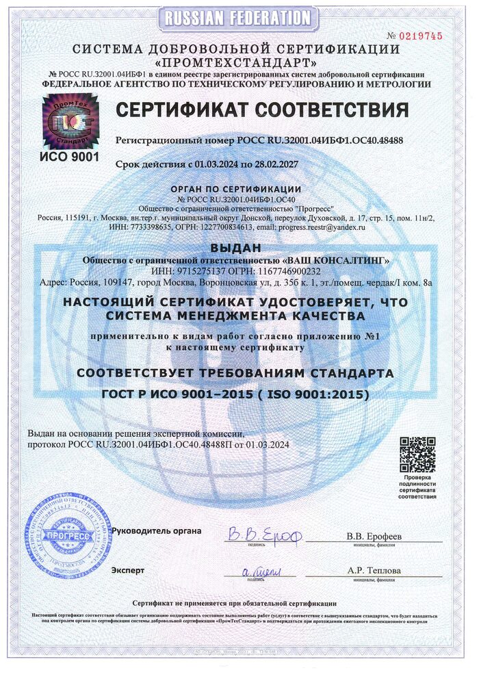 Команда ООО «Ваш Консалтинг», возглавляемая Натальей Матвеевой, всегда была нашим надежным партнером, вовлеченным в процесс, помогающим нам разбираться во всех сложностях. Они являются добросовестными, честными и ответственными специалистами. В наше время это действительно редкость найти таких профессионалов, которые одновременно являются порядочными людьми. Благодарим вас за долгое и успешное сотрудничество.